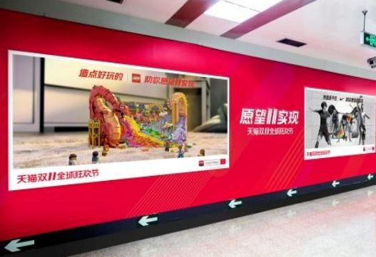 西北口西墻墻貼+南墻豪華燈箱+84寸電子屏1塊