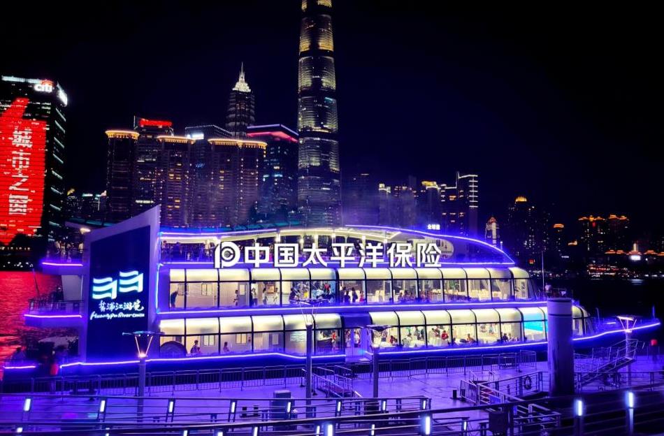 全球通號又叫水晶宮號,船體通透,是迄今為止黃浦江上最具通透性的豪華游船。游船采用隱型玻璃幕墻。