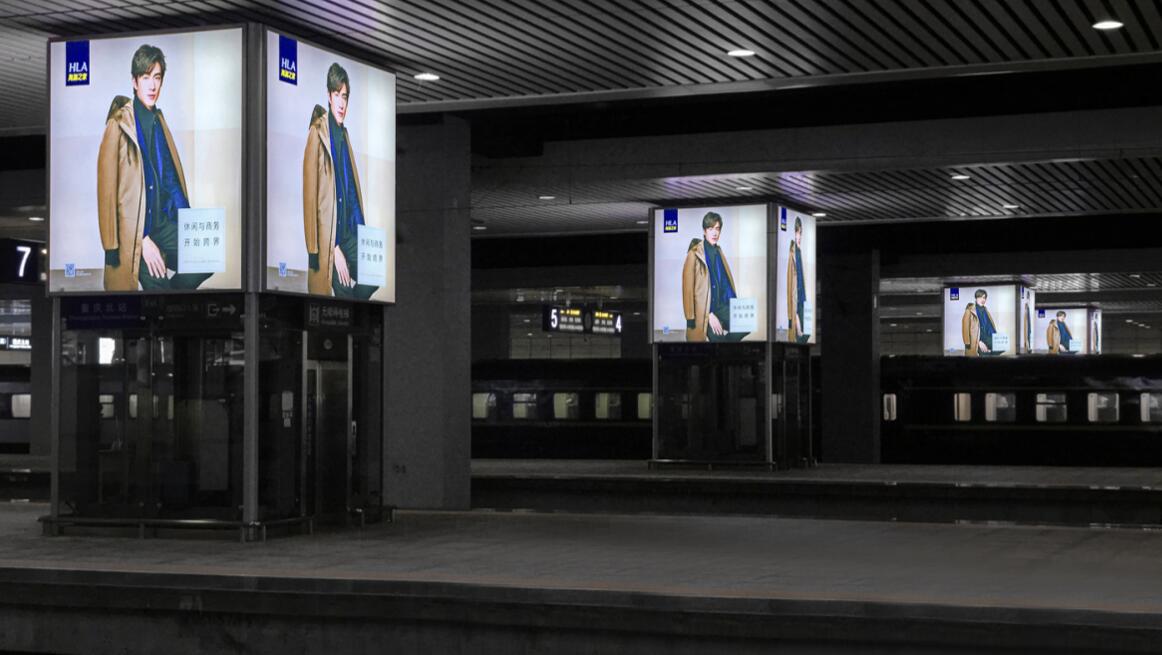 | 重慶北站站臺層四面直梯燈箱 · 16座 媒體尺寸(寬x高x面): 19.18㎡ (3.165m×3.0m×2面) 16.09㎡(2.655m×3.03m×2面) 投放形式:4座/組 媒體價值: 1、該媒體位于站臺層,此媒體360度無死角全覆蓋進(jìn)站和出站所有人群, 無遮擋; 2、且媒體四面效果、距離近、面積大,視覺沖擊力極強(qiáng)。 |