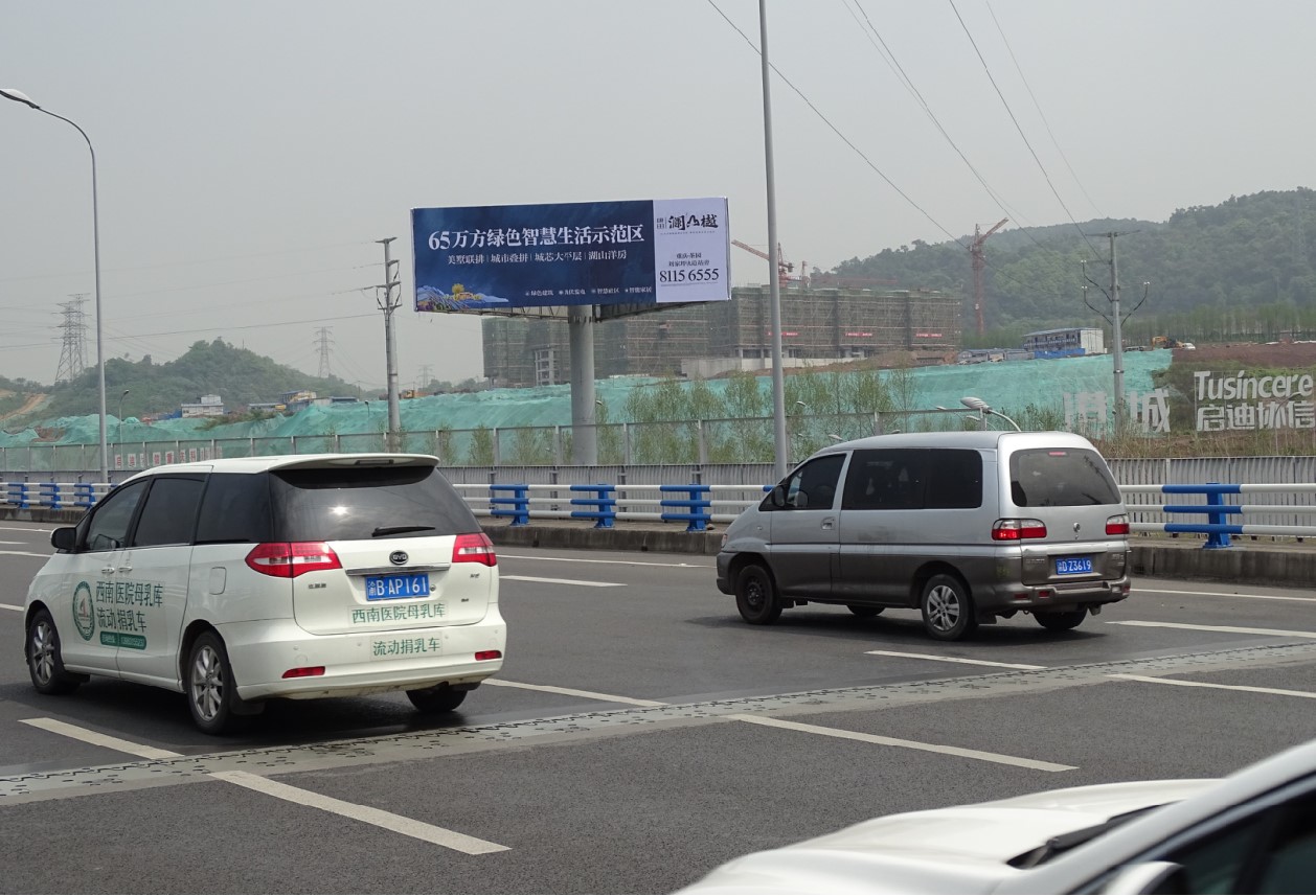 主城東環區域前往機場T3航站樓的必經要道。 同時是渝宜高速公路的一段,是重慶主城通往長壽,涪陵,萬州等長江下游的高速干道。車流量極大,視野開闊,周邊無其他媒體干擾,廣告發布效果明顯。