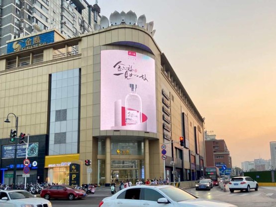 本LED大屏位于金鷹圓融購物中心的正門上方,堪稱通城第一屏,商業(yè)價(jià)值無與倫比。